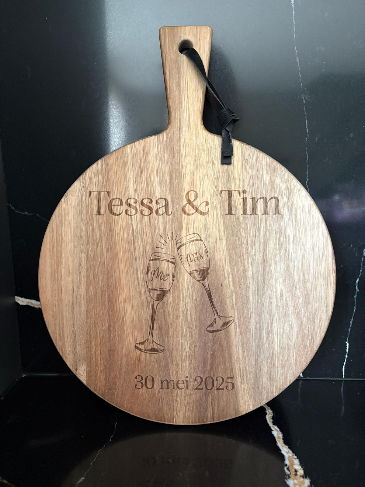 Geef een cadeau dat blijft: een gepersonaliseerde borrelplank, met naam, datum of...